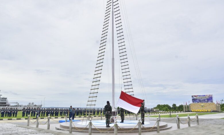 Kapabar – Dalam suasana penuh penghormatan dan nasionalisme, Komando Armada III (Koarmada III) menggelar upacara pengibaran bendera setengah tiang di Lapangan Apel Markas Komando (Mako) Koarmada III, Senin 21 April 2025.
