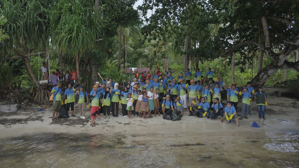 Setelah selesai kegiatan penanaman pohon, dilanjutkan dengan bersih sampah pada garis pantai di sekitar pesisir pulau Soop.